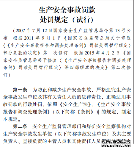 生產(chǎn)安全事故罰款 處罰規(guī)定 (試行)