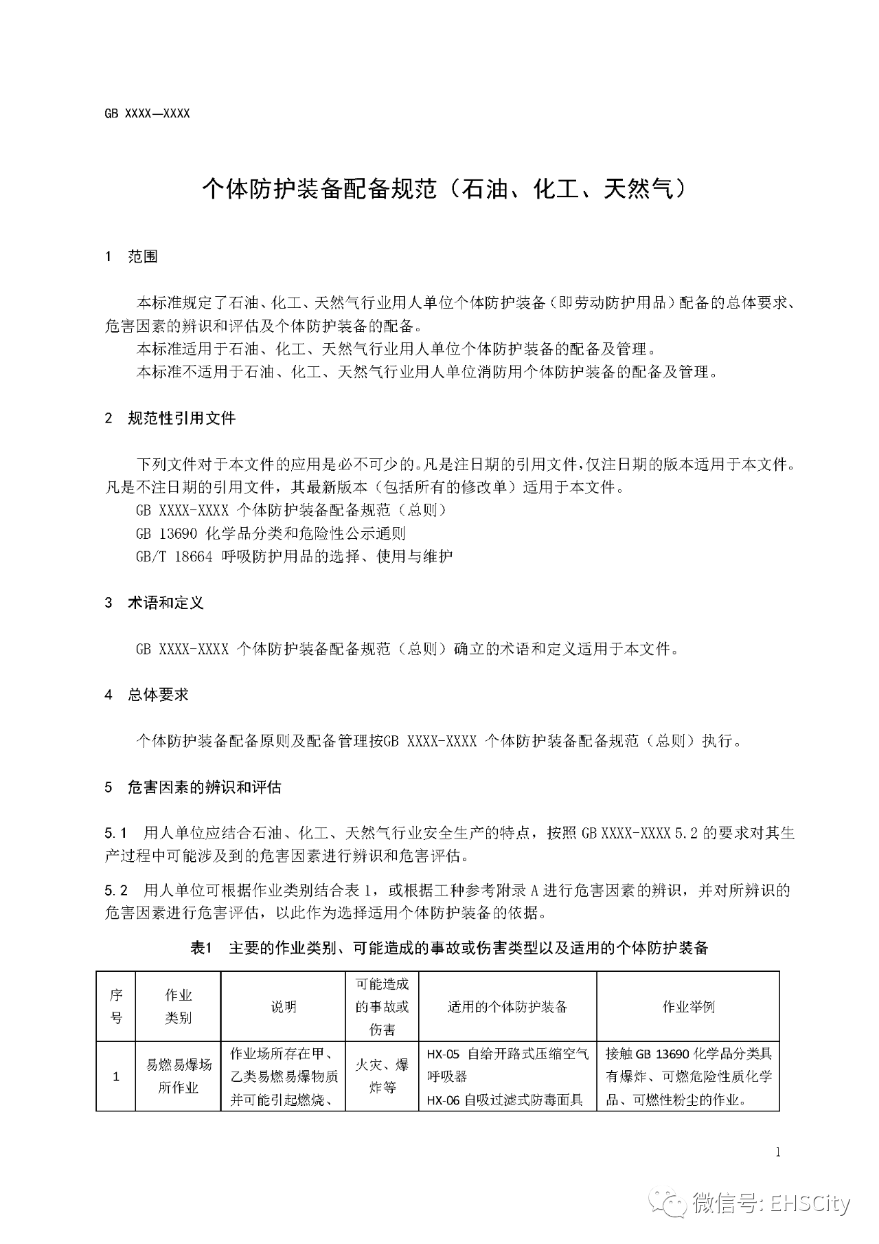 GB39800.2《個體防護裝備配備規(guī)范(石油化工天然氣)(征求意見稿)》,2022年1月1日起實施。