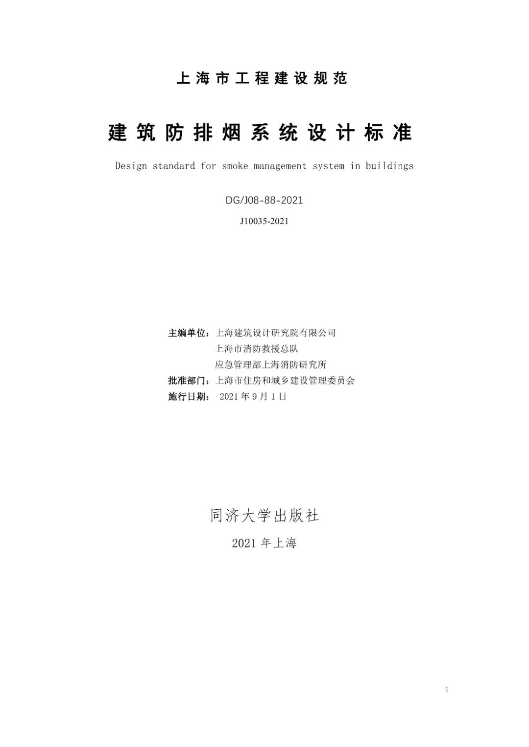 最新定稿:上海《建筑防煙排煙系統(tǒng)設計標準》最新定稿版