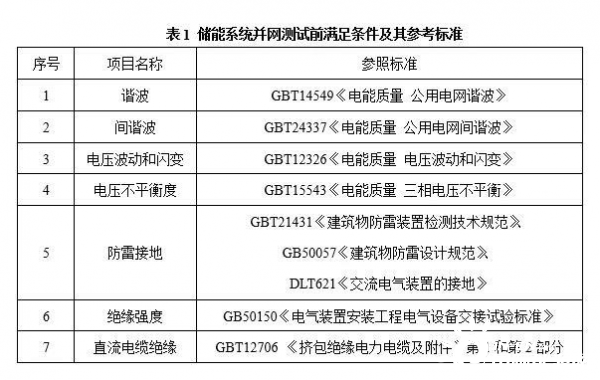 基本條件對(duì)電化學(xué)儲(chǔ)能系統(tǒng)的防雷接地裝置、接入點(diǎn)設(shè)備的絕緣強(qiáng)度和耐壓以及接入點(diǎn)電網(wǎng)的電能質(zhì)量等進(jìn)行了規(guī)定。具體參照的標(biāo)準(zhǔn)如表1所示。