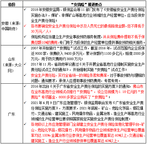 2016年12月,《中共中央國(guó)務(wù)院關(guān)于推進(jìn)安全生產(chǎn)領(lǐng)域改革發(fā)展的意見(jiàn)》明確要求:建立健全安全生產(chǎn)責(zé)任保險(xiǎn)制度,在礦山、危險(xiǎn)化學(xué)品、煙花爆竹交通運(yùn)輸、建筑施工、民用爆炸物品、金屬冶、漁業(yè)生產(chǎn)等高危行業(yè)領(lǐng)域強(qiáng)制實(shí)施,切實(shí)發(fā)揮保險(xiǎn)機(jī)構(gòu)參與風(fēng)險(xiǎn)評(píng)估管控和事故預(yù)防功能。