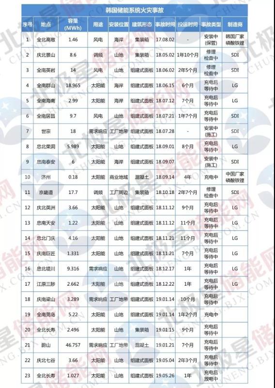 韓國政府公布23起儲能電站火災事故調(diào)查結果 并提出四大改善措施