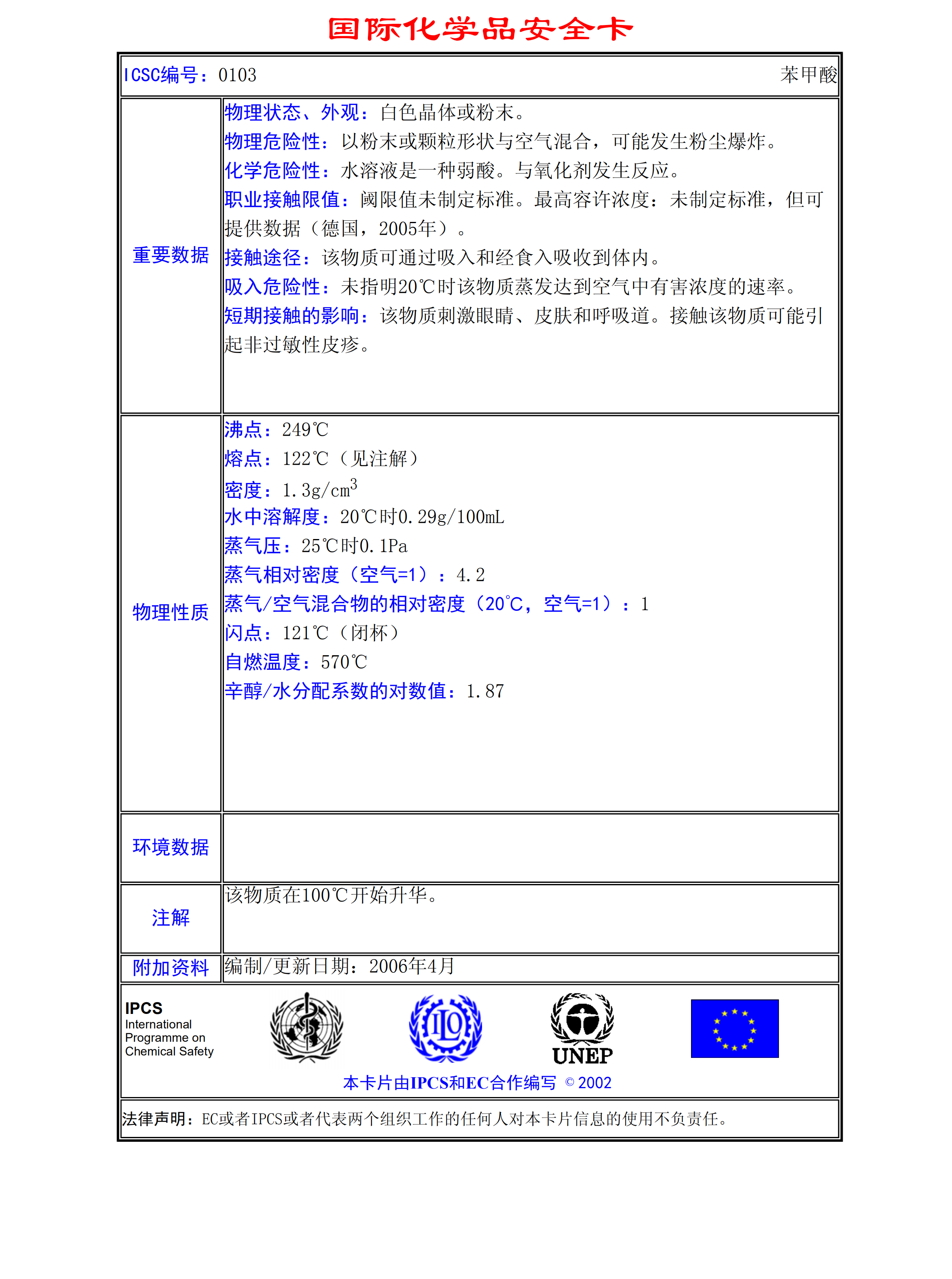苯甲酸MSDS