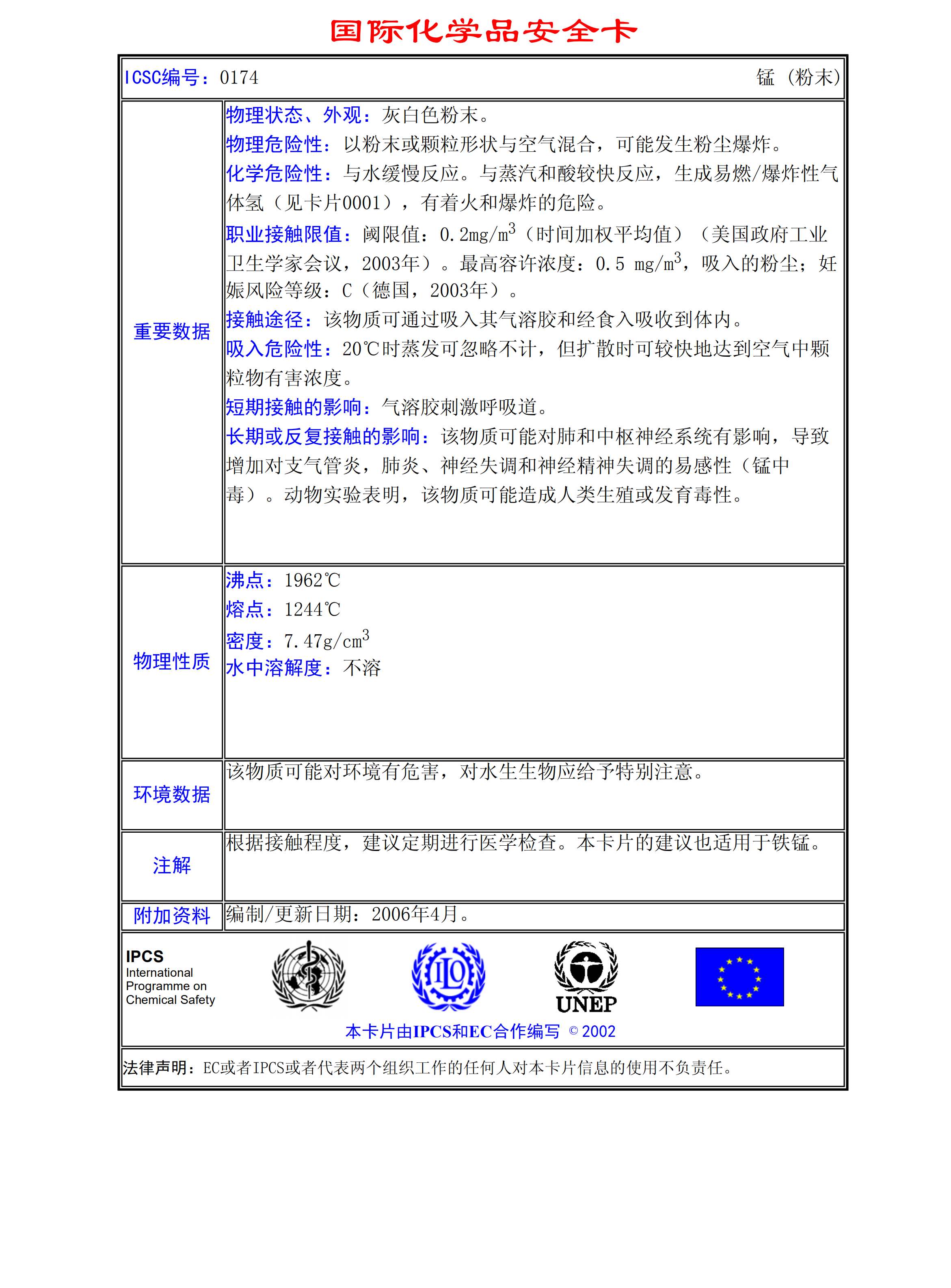 錳(粉末)MSDS