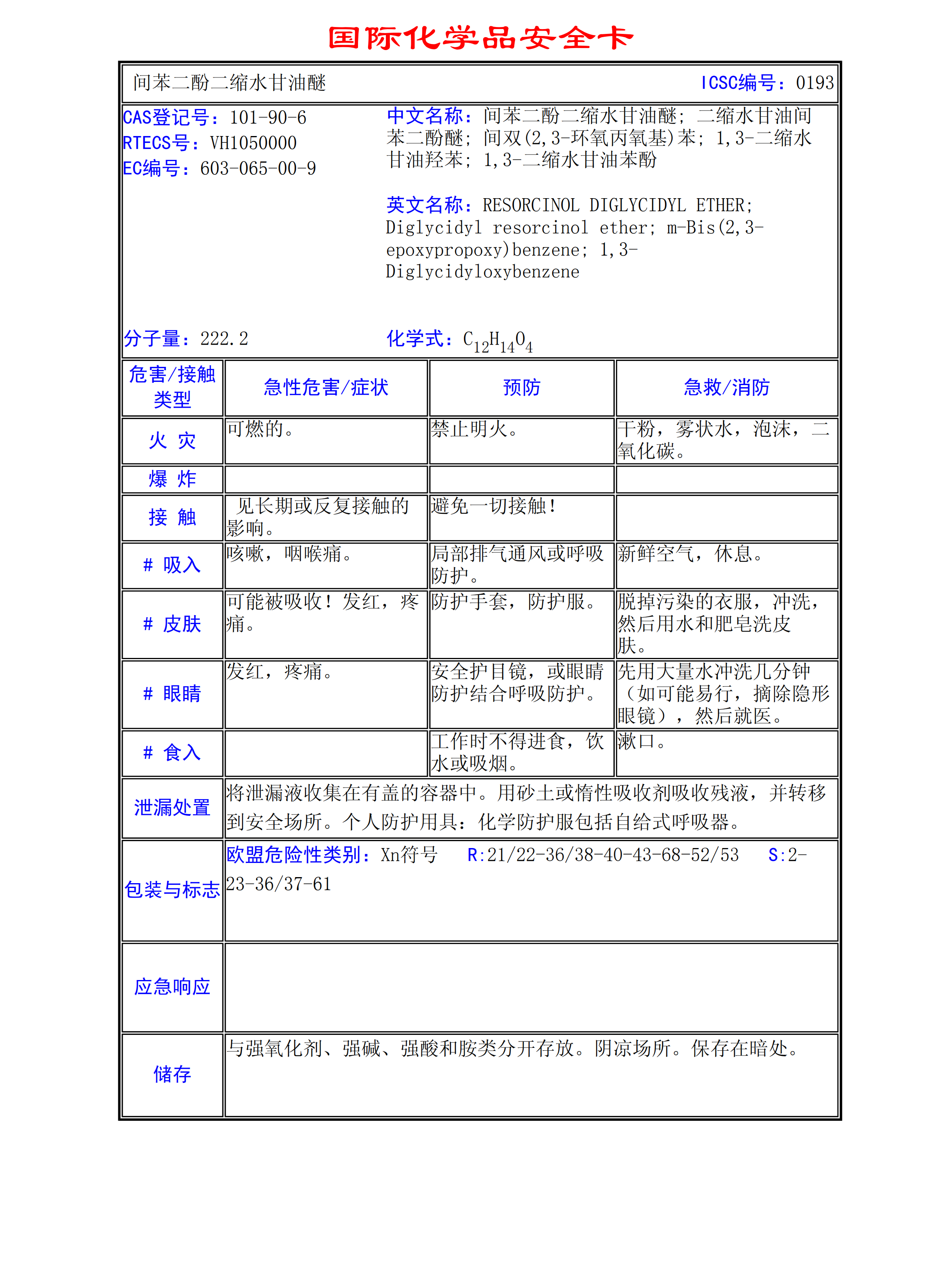 間苯二酚二縮水甘油醚MSDS