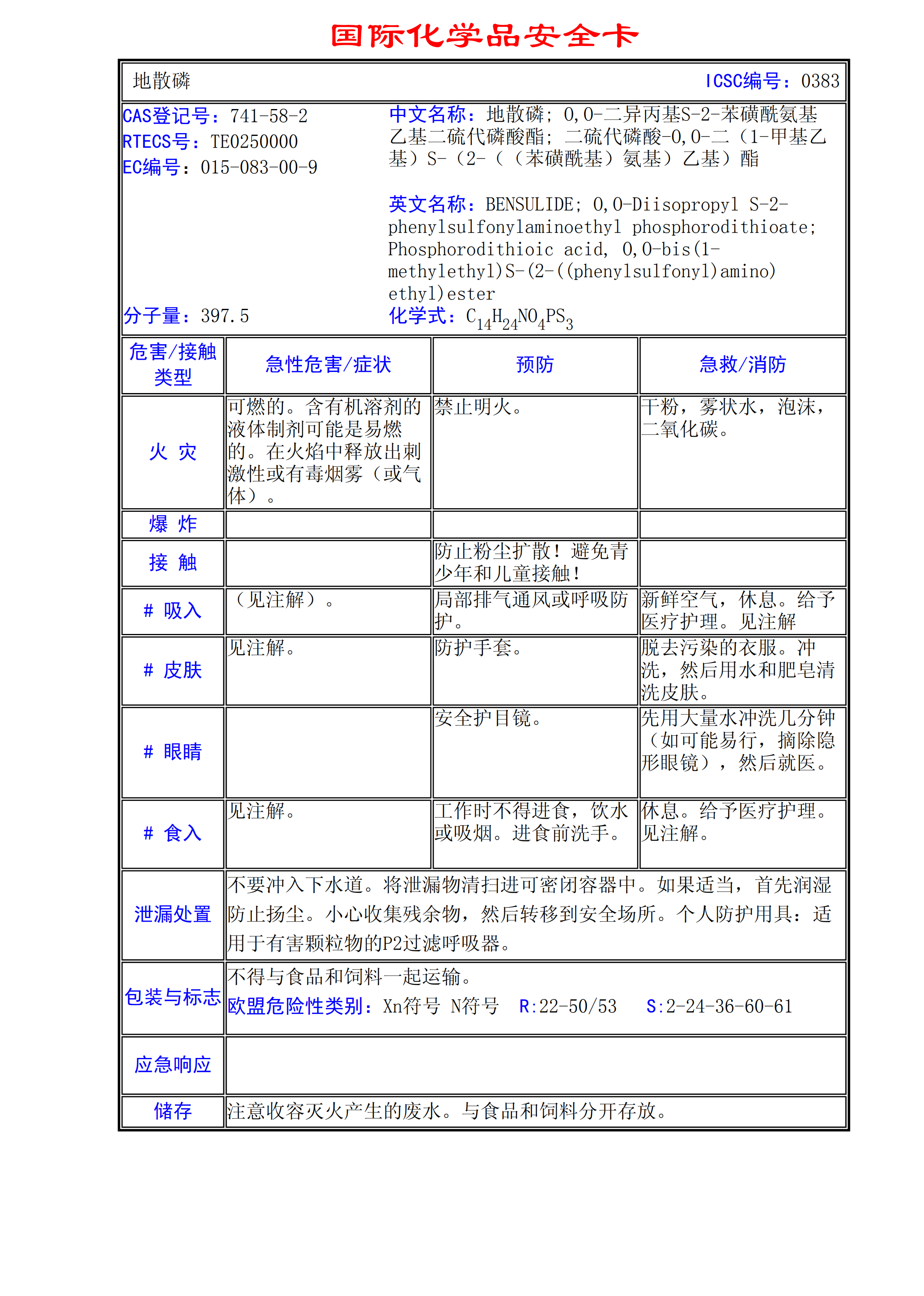 地散磷MSDS