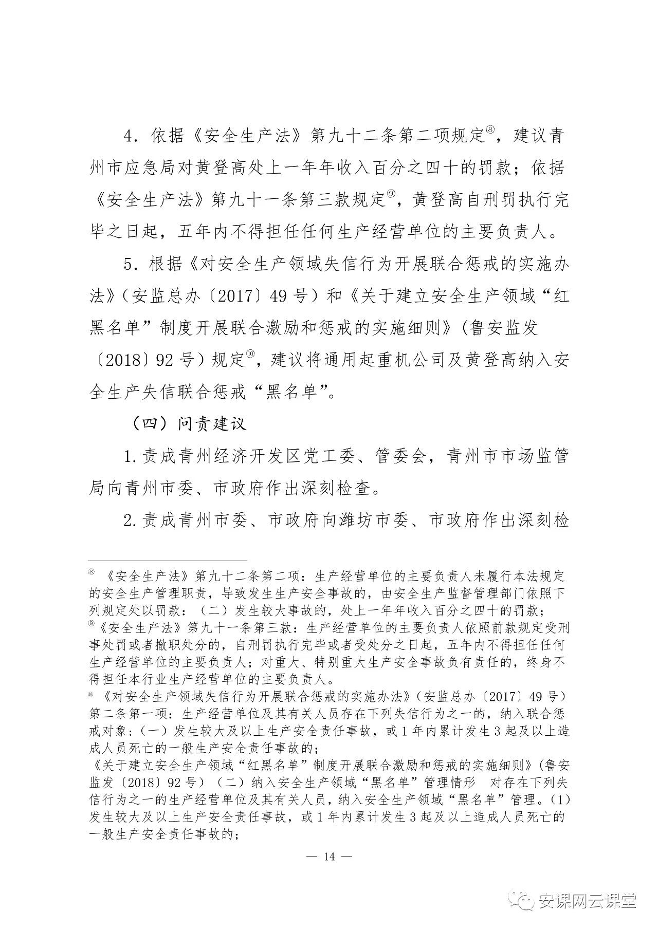 2020年5 月16 日,被青州市公安局采取監(jiān)視居住強(qiáng)制措施。涉嫌構(gòu)成重大責(zé)任事故罪,建議司法機(jī)關(guān)依法追究其刑事責(zé)任。建議由青州市紀(jì)檢監(jiān)察機(jī)關(guān)按規(guī)定及時(shí)給予其相應(yīng)的黨紀(jì)處分。