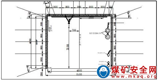 (2)幫部支護(hù):采用錨網(wǎng)索支護(hù),每排采用 4 棵 MSGLW600-22×2500mm 無(wú)縱肋螺紋鋼式樹(shù)脂錨桿和 1 棵 SKZ22-1/1770-3800mm 中空注漿錨索,排距 1000mm。在每幫上下部各施工 1 棵 SKZ22-1/1770-3800/8300mm 中空注漿錨索,排距52000mm。(見(jiàn)圖 5)