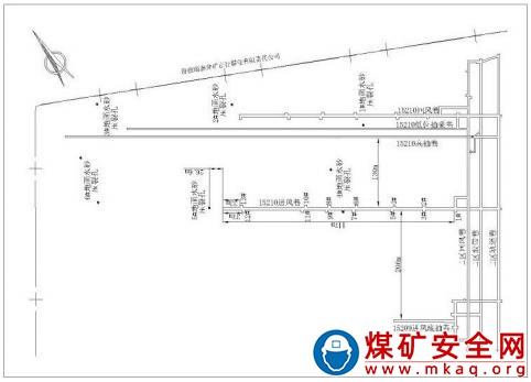 15210 回風(fēng)巷、15210 低位抽采巷、15210 高抽巷(已掘到位封閉),巷道南側(cè)布置有 15209 進(jìn)風(fēng)底抽巷。15210 進(jìn)風(fēng)巷及相鄰區(qū)域基