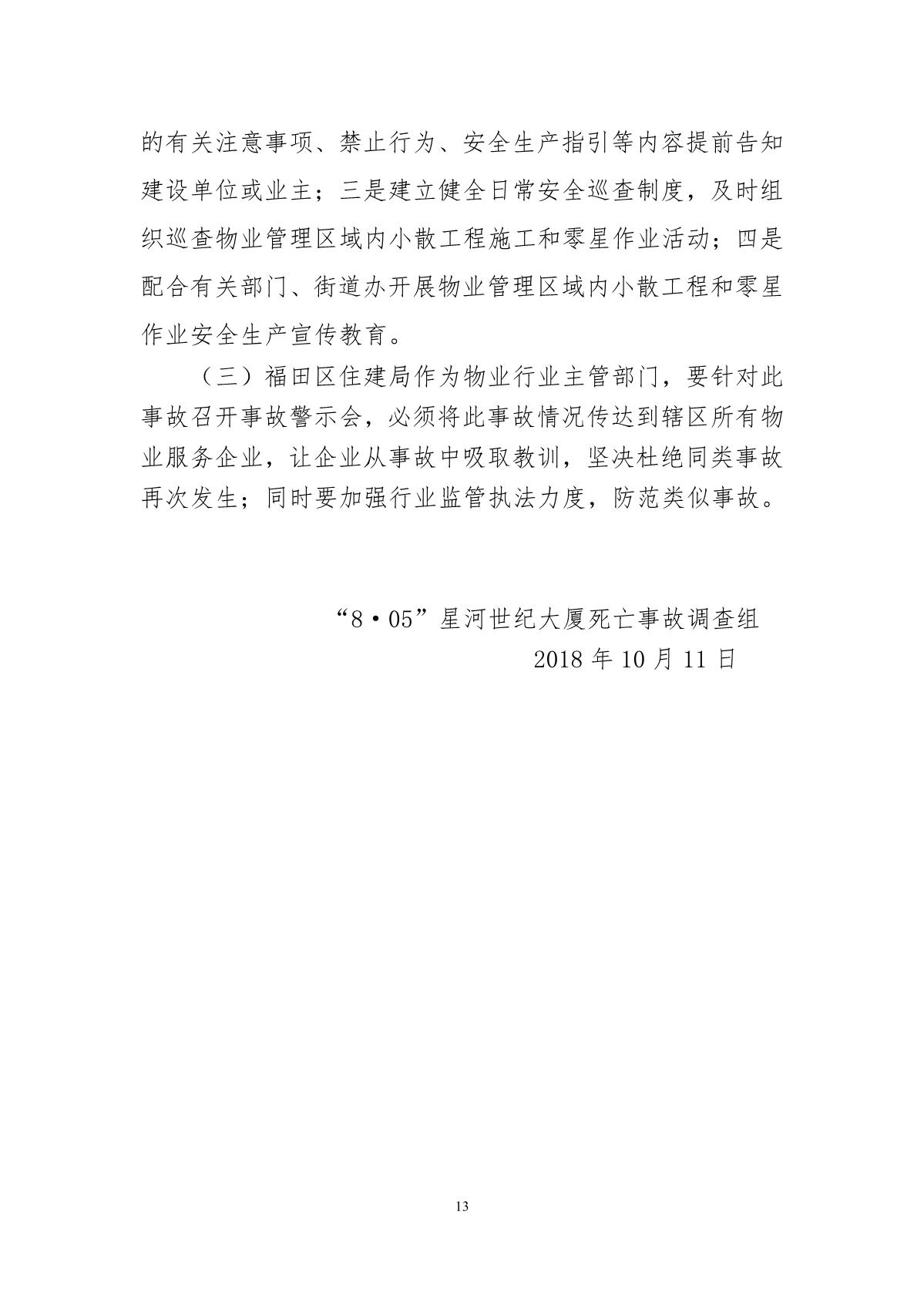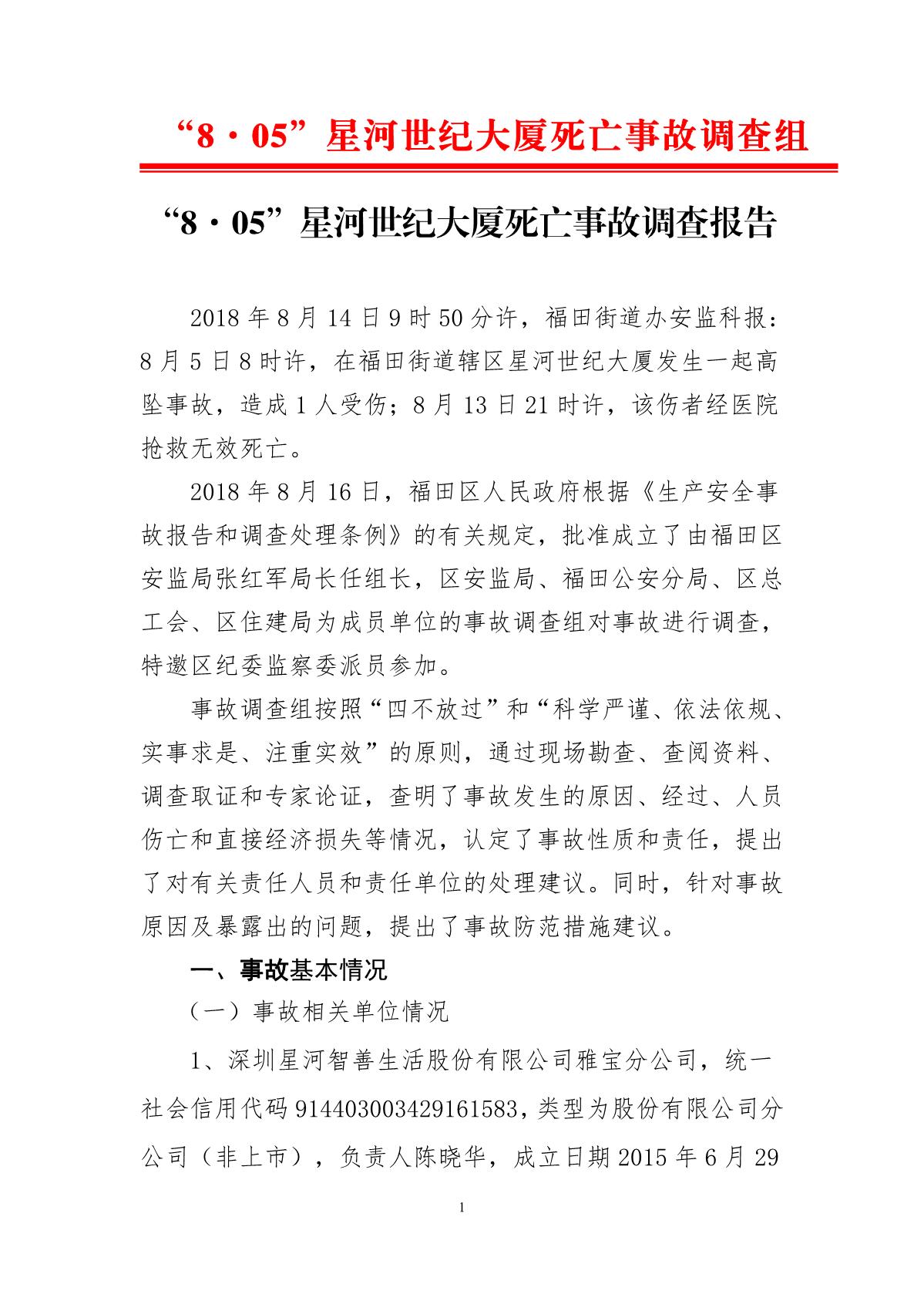“8.05”星河世紀大廈死亡事故調(diào)查報告