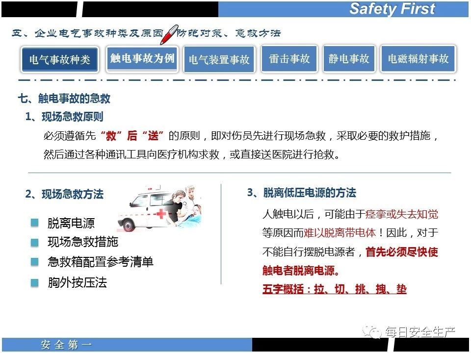 遇到觸電事故,現(xiàn)場救援必須注意以下幾點: