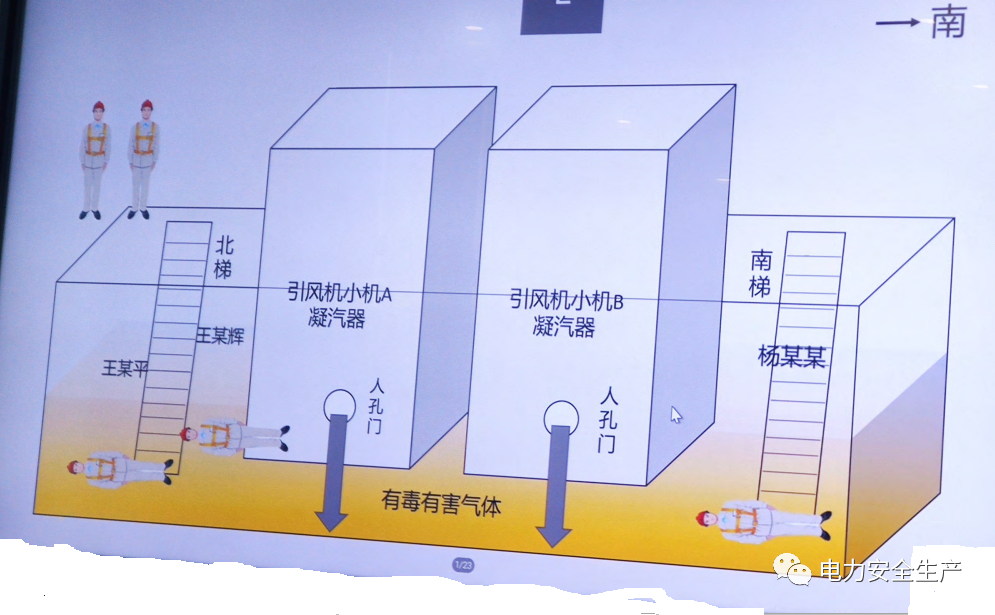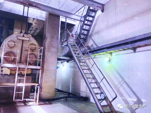 15:40安潔公司楊某某等4名作業(yè)人員,從#4機(jī)組汽動(dòng)引風(fēng)機(jī)室北側(cè)鋼步梯依次走下凝汽器區(qū)域準(zhǔn)備清理垃圾及取回相關(guān)工具,走在前面的王某某、王某某在下樓梯半途中暈倒并滑落至樓梯底部,走在后面的楊某某、王某某發(fā)現(xiàn)情況異常,隨即退至汽動(dòng)引風(fēng)機(jī)室外,并電話報(bào)告檢修部鄭某某。