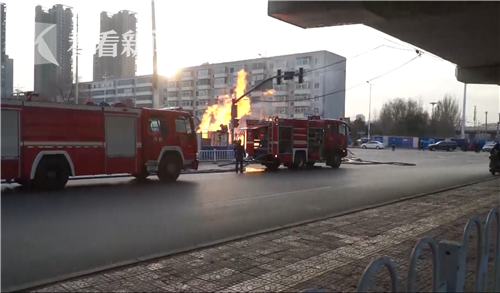 11月26日早上7點(diǎn)20左右,遼寧省沈陽市鐵西區(qū)重工街與沈新路交匯口,由于地下燃?xì)夤艿佬孤?dǎo)致起火,迅速引燃多輛路邊停放的車輛。