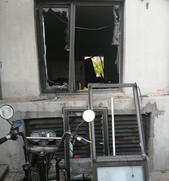 窗框整扇被崩飛,