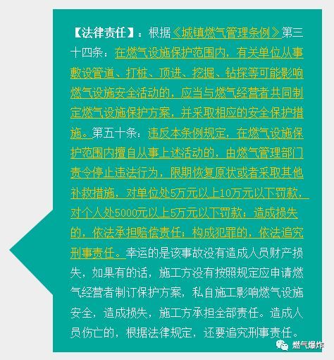 2018年11月11日上午7時(shí)許,青島市北區(qū)嘉定路16號(hào)保利里院里小區(qū)5號(hào)樓發(fā)生一起居民燃?xì)忾W爆事故,事故造成2人受傷以及多戶(hù)居民財(cái)產(chǎn)損失。據(jù)報(bào)道,事故原因調(diào)查及善后工作正在進(jìn)行中......【爆炸新聞】10多層樓玻璃被炸飛!2人受傷!青島一小區(qū)發(fā)生燃?xì)忾W爆事故!這波知識(shí)必須要知道!?天然氣清潔高效,其推廣使用,給市民帶來(lái)了極大的方便。但因燃?xì)夤芫W(wǎng)遍布城市地下區(qū)域,管道伸入到居民家中,居民又是直接操作者使用者,燃?xì)獍踩珕?wèn)題就成了涉及每個(gè)人的問(wèn)題。無(wú)論是政府、燃?xì)饨?jīng)營(yíng)企業(yè)、還是居民用戶(hù)都應(yīng)格外重視燃?xì)獍踩?,提高燃?xì)獍踩?zé)任意識(shí),避免事故的發(fā)生。為此,應(yīng)在查明“11.11青島市北區(qū)保利里院里小區(qū)燃?xì)忾W爆事故”原因的基礎(chǔ)上,落實(shí)各主體責(zé)任,并依法維護(hù)各自權(quán)益。律師根據(jù)多年既往案例,對(duì)燃?xì)馐鹿噬婕暗姆蓡?wèn)題進(jìn)行評(píng)析,希望能為相關(guān)責(zé)任主體提供有益的法律建議。01發(fā)生燃?xì)馐鹿蕰r(shí),各方應(yīng)如何進(jìn)行責(zé)任自查?1、燃?xì)夤拘枰圆榈膬?nèi)容包含但不限于:在為用戶(hù)開(kāi)通燃?xì)鈺r(shí)是否進(jìn)行了用氣安全教育,是否定期進(jìn)行用氣安全宣傳;是否定期入戶(hù)安檢,用戶(hù)是否在安檢單上簽字確認(rèn),發(fā)現(xiàn)隱患后是否及時(shí)補(bǔ)檢,用戶(hù)是否配合隱患整改;若用戶(hù)安裝有燃?xì)鈭?bào)警器,燃?xì)鈭?bào)警器是否連接電源,燃?xì)鈭?bào)警器是否連接電磁閥?燃?xì)鈭?bào)警器安裝是否符合《城鎮(zhèn)燃?xì)庠O(shè)計(jì)規(guī)范》;用戶(hù)的燃?xì)馄骶撸ㄈ細(xì)庠罹?、燃?xì)鉄崴鳎┦欠翊嬖诔谑褂?,安裝人員及單位是否具備相應(yīng)資格、資質(zhì);用戶(hù)是否存在裝修過(guò)程中未通知燃?xì)夤?,私改燃?xì)夤艿馈袢細(xì)夤艿?、將燃?xì)庠O(shè)施作為負(fù)重支架堆放、懸掛物品或者將燃?xì)夤艿雷鳛殡娖髟O(shè)施的接地導(dǎo)體等隱患;用戶(hù)是否規(guī)范用氣,用氣后及時(shí)關(guān)閉灶前閥;用戶(hù)是否存在自傷自殘等情況;是否投保相關(guān)保險(xiǎn)等。2、事故受害方責(zé)任追究過(guò)程中需要考量的內(nèi)容包含但不限于:燃?xì)夤驹谥脫Q通氣時(shí)是否履行了安全宣傳教育;燃?xì)夤臼欠衩磕甓既霊?hù)安檢并對(duì)燃?xì)怆[患提出整改意見(jiàn);燃?xì)夤景惭b燃?xì)庠?、燃?xì)鈭?bào)警器和電磁閥是否符合國(guó)家規(guī)范;燃?xì)夤咎峁┑娜細(xì)庠睢⑷細(xì)鈭?bào)警器和電磁閥是否質(zhì)量合格;其他需要注意的問(wèn)題。3、燃?xì)庵鞴懿块T(mén)履責(zé)的重點(diǎn)內(nèi)容:1)作為燃?xì)庵鞴懿块T(mén),在事故發(fā)生后,進(jìn)行事故調(diào)查,協(xié)調(diào)燃?xì)夤?、受害人和公安、消防、居民辦事處等部門(mén),委托專(zhuān)家組出具事故調(diào)查的專(zhuān)家分析意見(jiàn),客觀公正的處理善后事宜,是本部門(mén)的法定職責(zé);2)作為此次事故調(diào)查的主管部門(mén),應(yīng)嚴(yán)格依法依規(guī)處理,還應(yīng)注意事發(fā)現(xiàn)場(chǎng)第一手資料的留存;3)嚴(yán)格遵守法定程序建立事故處理檔案,為今后司法處理保存證據(jù)材料,避免被燃?xì)獍讣芎θ嘶蚱渌黧w投訴;4)依法依規(guī)行使事故調(diào)查職責(zé)過(guò)程中,除了追求效率,還應(yīng)注意保護(hù)各方當(dāng)事人的合法權(quán)利。例如,涉及鑒定應(yīng)提 前通知各方當(dāng)事人,證據(jù)的封存、解封應(yīng)通知各方當(dāng)事人到場(chǎng),涉案相關(guān)信息主動(dòng)公開(kāi)或依申請(qǐng)公開(kāi),選聘事故調(diào)查專(zhuān)家組成員時(shí)應(yīng)留存各專(zhuān)家的資質(zhì)證明等。?02燃?xì)馐鹿拾l(fā)生后進(jìn)入訴訟程序的可能結(jié)果分析根據(jù)既往辦案經(jīng)驗(yàn)及既有案例,律師總結(jié)法院裁判觀點(diǎn)如下:1、關(guān)于事故事實(shí)的認(rèn)定,一般以事故調(diào)查專(zhuān)家組出具的專(zhuān)家分析意見(jiàn)為準(zhǔn)。2、在居民燃?xì)獗及讣?,燃?xì)夤竞苌儆胁怀袚?dān)責(zé)任的情形。3、作為事故的受害方,選擇盡可能多的與事故相關(guān)的被告,越有利于維護(hù)自身權(quán)利。4、司法機(jī)關(guān)在民事責(zé)任領(lǐng)域,一般會(huì)站在同情弱者的角度裁判。5、若燃?xì)獗ㄊ鹿氏等藶楣室庠斐?,行為人可能?huì)涉嫌刑事犯罪,罪名包括但不限于爆炸罪、以危險(xiǎn)方法危害公共安全罪等。?案例一12012年7月27日重慶奉節(jié)縣一居民家發(fā)生天然氣意外泄漏事故,發(fā)生事故的居民家中所有家具和電器都被燒毀,窗戶(hù)的玻璃已被震爛。爆炸造成一家6人燒傷,最終一人搶救無(wú)效死亡。據(jù)網(wǎng)上報(bào)道爆炸是由于天然氣管道與輸氣軟管之間存在縫隙,導(dǎo)致天然氣泄漏引發(fā)的。在該戶(hù)家中,發(fā)現(xiàn)新買(mǎi)的燃?xì)庠罹?,是個(gè)三無(wú)產(chǎn)品。該戶(hù)的燃?xì)夤艿?,是由兩根軟管接起?lái)的,一根軟管不夠長(zhǎng),中間還用一根硬塑料管連了起來(lái),還使用了膠水來(lái)粘接,這是非常危險(xiǎn)的作法,連接的塑料管是硬的,天然氣完全可能因連接處泄