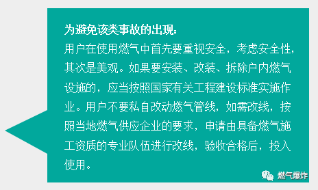 2012年7月27日重慶奉節(jié)縣一居民家發(fā)生天然氣意外泄漏事故,發(fā)生事故的居民家中所有家具和電器都被燒毀,窗戶(hù)的玻璃已被震爛。爆炸造成一家6人燒傷,最終一人搶救無(wú)效死亡。據(jù)網(wǎng)上報(bào)道爆炸是由于天然氣管道與輸氣軟管之間存在縫隙,導(dǎo)致天然氣泄漏引發(fā)的。在該戶(hù)家中,發(fā)現(xiàn)新買(mǎi)的燃?xì)庠罹?,是個(gè)三無(wú)產(chǎn)品。該戶(hù)的燃?xì)夤艿?,是由兩根軟管接起?lái)的,一根軟管不夠長(zhǎng),中間還用一根硬塑料管連了起來(lái),還使用了膠水來(lái)粘接,這是非常危險(xiǎn)的作法,連接的塑料管是硬的,天然氣完全可能因連接處泄漏出來(lái)。也許是用戶(hù)點(diǎn)了火,也許只是開(kāi)了某一種電器的開(kāi)關(guān),就引起了天然氣爆炸,隨后的火焰擴(kuò)散,屋內(nèi)東西全部燒毀。