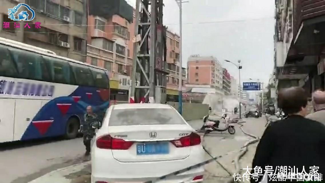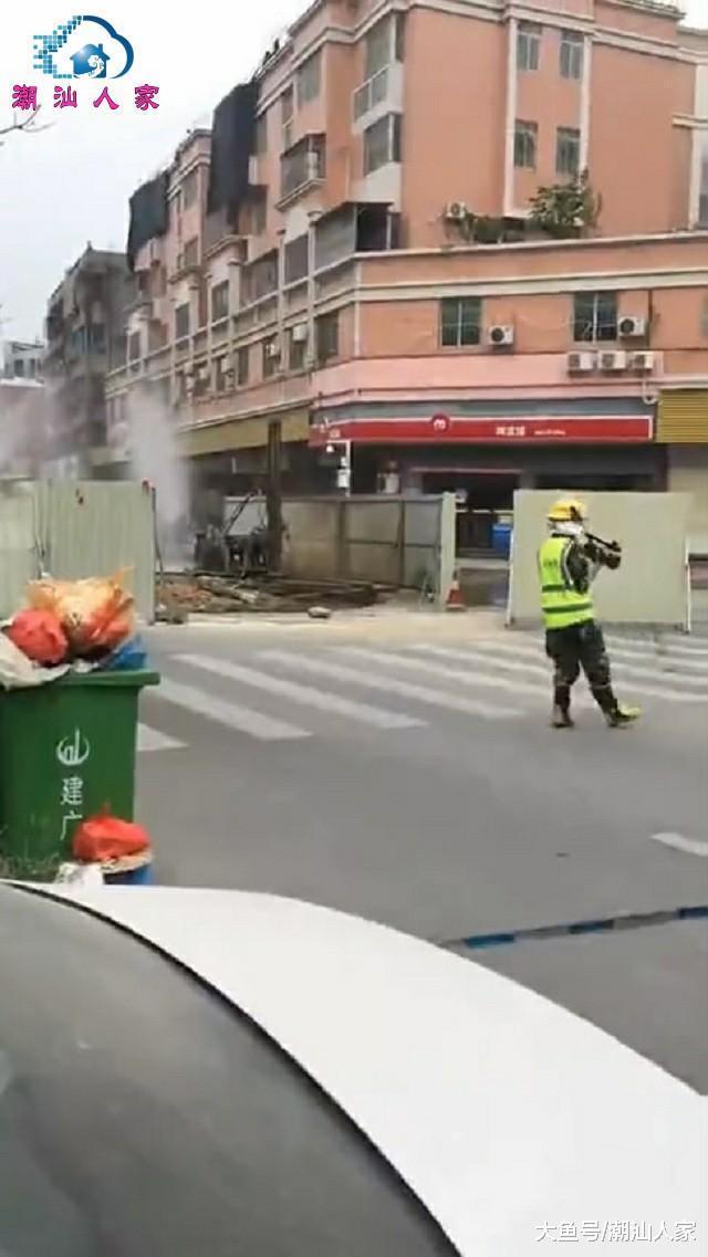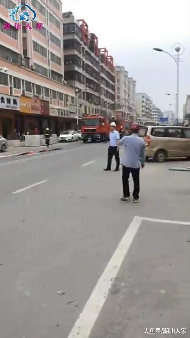 潮州發(fā)生一起天然氣管道泄漏事故, 現(xiàn)場(chǎng)拉起警戒線(xiàn)和疏散人群