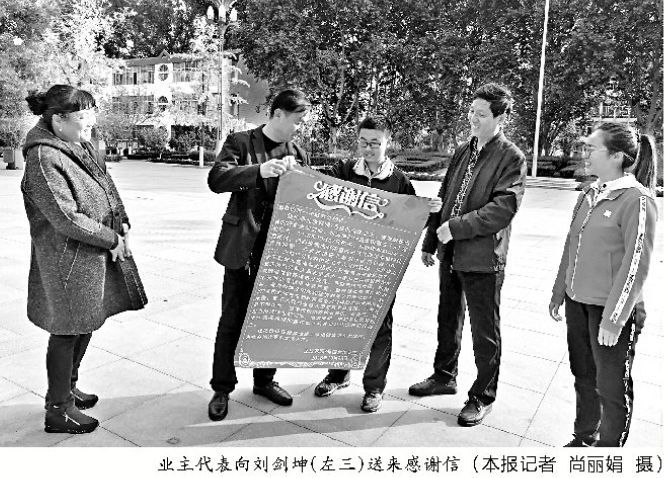 本報訊 (記者 尚麗娟)11月1日,家住北辰家園7號樓的10多名業(yè)主代表來到市一中送感謝信,感謝該校高三(9)班學生劉劍坤及時發(fā)現(xiàn)鄰居天然氣泄漏后報警,并幫助疏散鄰居,引導消防員搶險,避免了更大災難的發(fā)生。