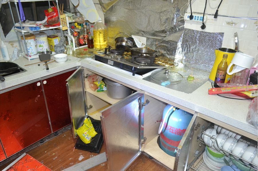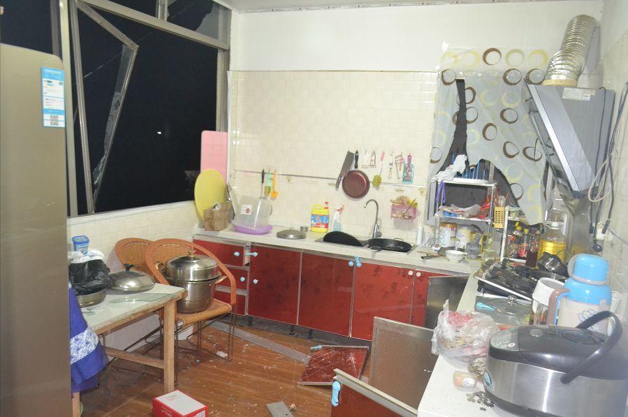 爆炸點(diǎn)位于新村鎮(zhèn)一村民楊某某家中的廚房,現(xiàn)場(chǎng)一片狼籍,窗戶也已經(jīng)飛出窗外。幸運(yùn)的是,爆炸發(fā)生時(shí)沒人在現(xiàn)場(chǎng),未發(fā)生人員傷亡。
