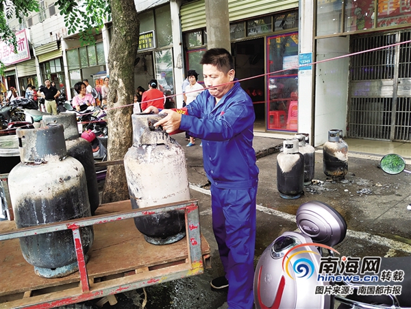 ??谝患以绮偷昝簹庑孤┮l(fā)火災(zāi) 店鋪燒毀6個煤氣瓶燒黑