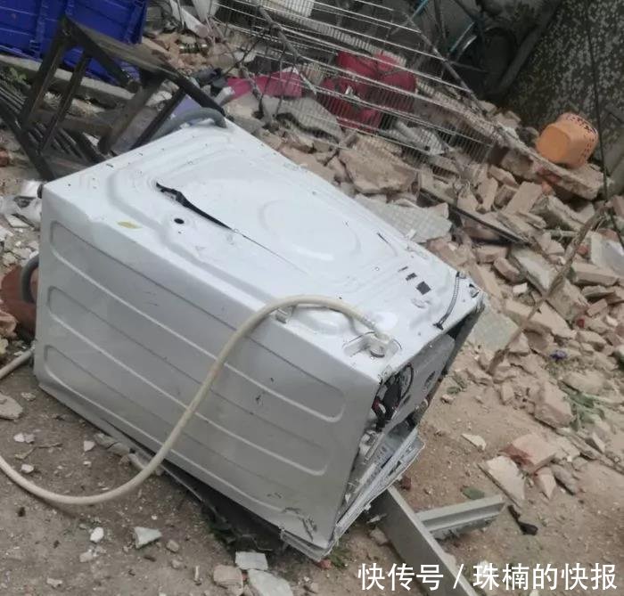 事發(fā)地點位于桃園小區(qū)34棟3梯2樓。記者在現(xiàn)場看到,2樓住宅西面及南面的墻壁被震塌,倒下的墻體砸中樓下一部小車。二樓門框和洗衣機等家具也掉到樓下,磚塊瓦礫、玻璃碎片灑落一地,現(xiàn)場一片狼藉,可見當(dāng)時爆炸的威力十分巨大。
