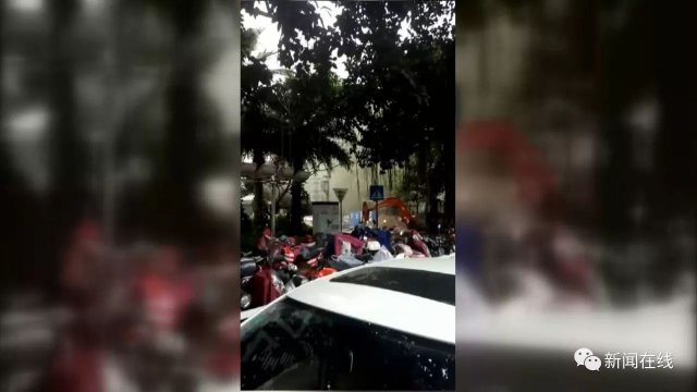 那個煤氣管道(燃氣)沖到樹葉頂了,這么高,然后又聞,那個煤氣好難聞的,然后我就把那個業(yè)主全部趕到里頭去,汽車啊,還有那個他們開電動車,我也怕爆炸,我全部趕到 1 棟去。