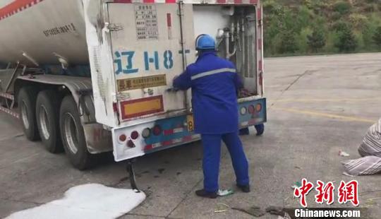 民警全程監(jiān)控天然氣運輸車堵漏處置。高速交警 供圖