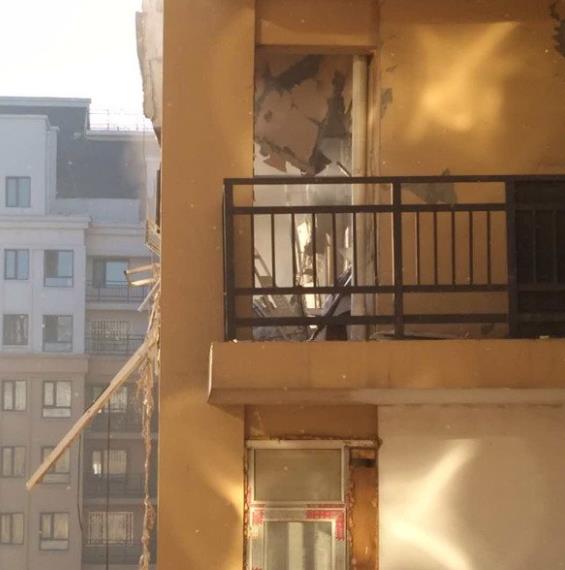 9 時許,記者趕到涉事小區(qū),小區(qū)地面上散落著大量玻璃碎片,此時小區(qū)3 號樓4 單元已被設立警戒線,29 樓一民宅窗戶碎裂,樓外墻體苯板裂開數(shù)條裂縫,該樓層走廊一片狼藉,樓層電梯間已嚴重變形,供暖、供水、電力、燃氣等部門工作人員在樓內排查,樓內居民已全部被疏散。