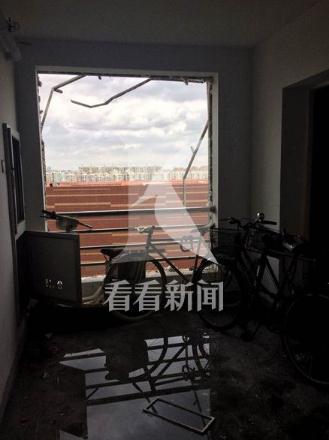 事發(fā)時(shí),周邊居民聽到巨響,隨后有人感到震動(dòng),事故發(fā)生后,該幢大樓內(nèi)不少居民家中受到殃及,幾個(gè)樓層的居民家里玻璃窗被震碎,大量玻璃碎片、窗框、書籍等雜物掉落在小區(qū)通道上,多輛轎車擋風(fēng)玻璃被砸穿,小區(qū)草坪、通道上到處是散落的碎玻璃渣和各種生活用品。