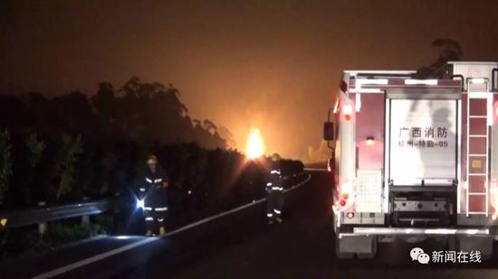 昨日凌晨1點(diǎn)左右,在蘭海高速公路北海往南寧方向欽州路段發(fā)生了一起兩車(chē)追尾的事故,事故導(dǎo)致將近20噸的液化天然氣發(fā)生泄露,現(xiàn)場(chǎng)火光沖天,情況危急。