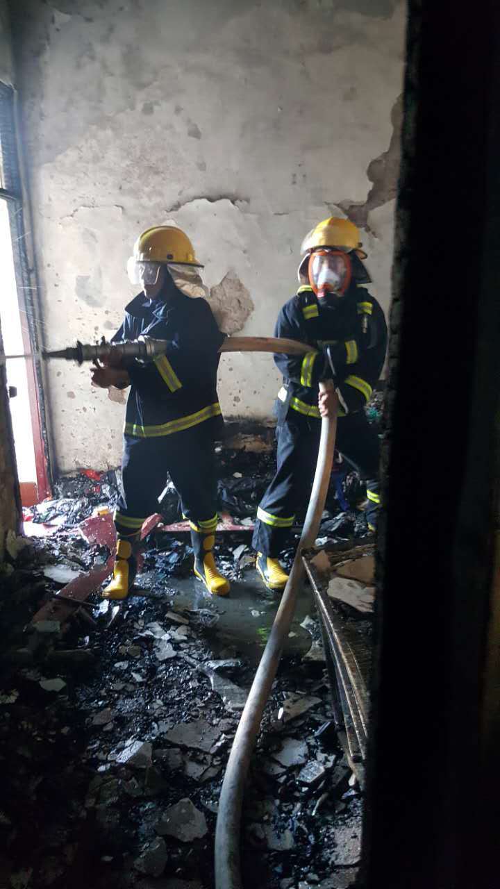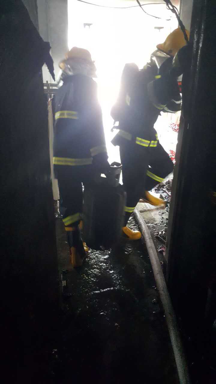 經(jīng)過一小時的努力,明火在燒向煤氣罐前被撲滅,兩只煤氣罐經(jīng)噴水降溫后被消防輔警拎出,除起火服裝店外,附近建筑均無損失,沒有人員傷亡。