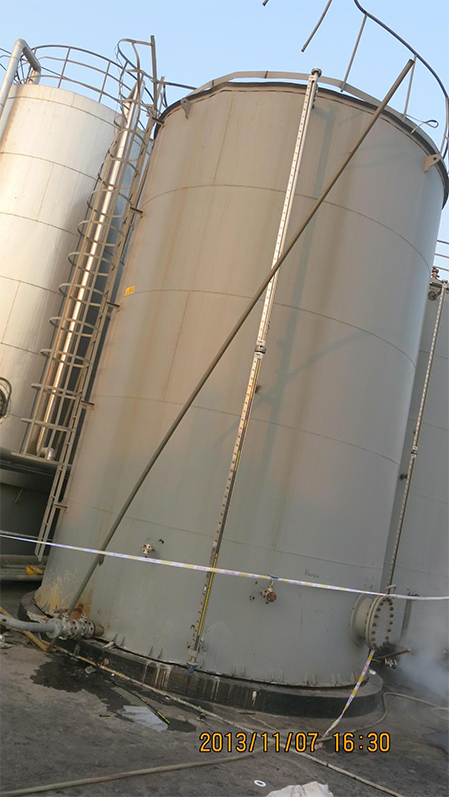 | 2013年10月份 | 九江天賜公司員工巡檢時(shí)就發(fā)現(xiàn)電解質(zhì)二期廢酸儲(chǔ)罐區(qū)A罐出現(xiàn)液位計(jì)穿孔等問(wèn)題,采取了臨時(shí)措施堵漏。 | |