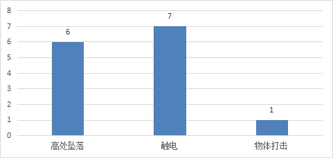 (四)按事故類別統(tǒng)計(jì):三季度,高處墜落造成6人死亡,觸電造成7人死亡,物體打擊造成1人死亡。 電力人身傷亡事故不同類別死亡人數(shù)